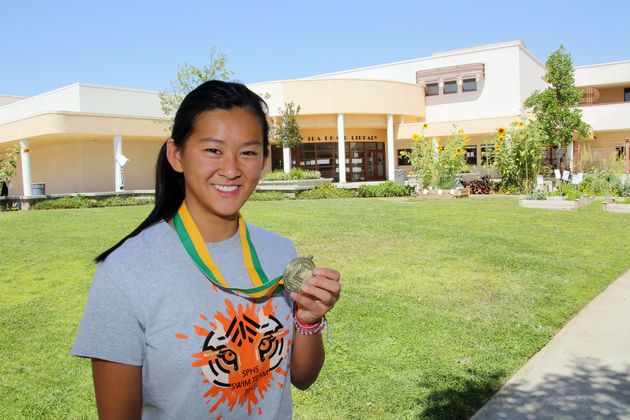 Irene Tang, a South Pasadena High School senior, shows off the medal she received as a 2015 Edison Scholars award recipient.