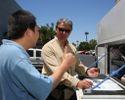 Day in the Life of an SCE Troubleman SCE Troubleman Eric Meyer performs some work at an underground vault. Download / File Link SCE Troubleman Eric Meyer performs some work at an underground vault. Credit: Jean Anderson Download / File Link Day in the Life of an SCE Troubleman SCE Troubleman Eric Meyer takes a call from dispatch. Download / File Link SCE Troubleman Eric Meyer takes a call from dispatch. Credit: Jean Anderson Download / File Link Day in the Life of an SCE Troubleman SCE Troubleman Eric Meyer prepares to troubleshoot a customer call in Irvine. Download / File Link SCE Troubleman Eric Meyer prepares to troubleshoot a customer call in Irvine. Credit: Jean Anderson Download / File Link Day in the Life of an SCE Troubleman SCE Troubleman Eric Meyer checks out a customer's electrical panel. Download / File Link SCE Troubleman Eric Meyer checks out a customer's electrical panel. Credit: Jean Anderson Download / File Link Day in the Life of an SCE Troubleman SCE Troublemen Eric Meyer (left) and Mark Martinez do a tailboard to discuss what work needs to be done at an underground vault. Download / File Link SCE Troublemen Eric Meyer (left) and Mark Martinez do a tailboard to discuss what work needs to be done at an underground vault. Credit: Jean Anderson Download / File Link Day in the Life of an SCE Troubleman SCE Troubleman Eric Meyer calls the Grid Control Center to provide an update on work at the underground vault. Download / File Link SCE Troubleman Eric Meyer calls the Grid Control Center to provide an update on work at the underground vault. Credit: Jean Anderson Download / File Link Day in the Life of an SCE Troubleman SCE Troubleman Eric Meyer explains the problems with a transfer switch to T-Mobile technician Anh Nguyen. Download / File Link SCE Troubleman Eric Meyer explains the problems with a transfer switch to T-Mobile technician Anh Nguyen. Credit: Jean Anderson Download / File Link Day in the Life of an SCE Troubleman T-Mobile technician Anh Nguyen shows his gratitude to SCE Troubleman Eric Meyer for helping to explain a problem with one of their transfer switches. Download / File Link T-Mobile technician Anh Nguyen shows his gratitude to SCE Troubleman Eric Meyer for helping to explain a problem with one of their transfer switches. Credit: Jean Anderson Download / File Link Eric Meyer takes us on a ride-along to see how he helps safely restore power to residents and businesses in the Saddleback District. July 30, 2014 | By Caroline Aoyagi-Stom @SCE_CarolineA IRVINE, Calif. — It’s 7 a.m. and Southern California Edison (SCE) troubleman Eric Meyer has just started his day. As often happens, the calls for his help start to come in almost immediately. This time it’s a no-lights call he’s asked to investigate. As he pulls his truck No. 30340 into the complex on a quiet residential street in Irvine, he locates the resident’s house No. 66. Before Meyer has a chance to knock on the door, he’s greeted by customer Gayle McCue. “I feel better now that you are here,” said the elderly customer, who noticed her power was off when she woke up that morning. She had gone to her neighbor’s house to ask for help since she doesn’t have a cell phone. It doesn’t take Meyer long to figure out the problem. Someone has turned off the circuit breakers in McCue’s electrical panel. He puts on his safety gear before quickly resetting the breaker and getting McCue’s power back on. He also advises her to put a lock on her panel to prevent any future tampering. “The most rewarding part of my job is helping people,” said Meyer, 45, who has been with SCE for 15 years, seven of those years as a troubleman. “It’s rewarding to find something that has been a problem and help figure it out. It makes you feel like you are making a difference.” McCue appreciates the troubleman’s help on this day. “Tell him he did a good job,” she said. A native of Missouri, Meyer served in the Navy for three years before a friend encouraged him to pursue a lineman job. He worked for Hawaiian Electric for a few years before heading to California in 2005 with his family. He’s been with SCE ever since, first as a lineman and now as a troubleman. “This is the best job in the company,” said Meyer, of San Clemente, as he prepared to head to his second call. This time a fellow troubleman has asked for his help in switching high-voltage circuits at an underground vault. “You really get to see what it takes to deliver power to our customers.” As he approaches Campus Drive in Irvine, fellow troubleman Mark Martinez has started preparations at the underground vault. A crew had earlier finished some work and Martinez and Meyer are there to do a final check. Both men prepare their safety gear before their tailboard, which includes emergency response procedure details, to discuss what work needs to be done. “If you’re not safe at this job, you shouldn’t be in this job,” said Meyer. “Safety is the most important thing you got out here. Rules will keep you alive.” “There’s a time to hustle and a time to pace yourself,” he added. “It’s like running a marathon. You need to pace yourself.” Donning their required safety gear — gloves, helmut, glasses, flame-resistant overalls — the troublemen take turns entering the de-energized 12,000-volt vault to do a visual check on the brand-new installation, including a check of the tags. Unlike many of the cities in SCE’s 50,000-square-mile service territory, much of the electrical lines in the city of Irvine are located underground. Troublemen in the Saddleback Service Center, an area that includes Irvine on the north and parts of Mission Viejo and Laguna Beach to the south, must go through special training to troubleshoot these underground lines. “Each job is different. When a customer needs helps, usually as troublemen we are able to start the process of remedying the situation,” said Martinez, who has worked for